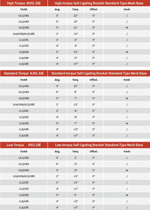 A patented full sliding door design with high, medium and low torque options ( Damon Prescription) and additional gingival auxillary slot for better control.