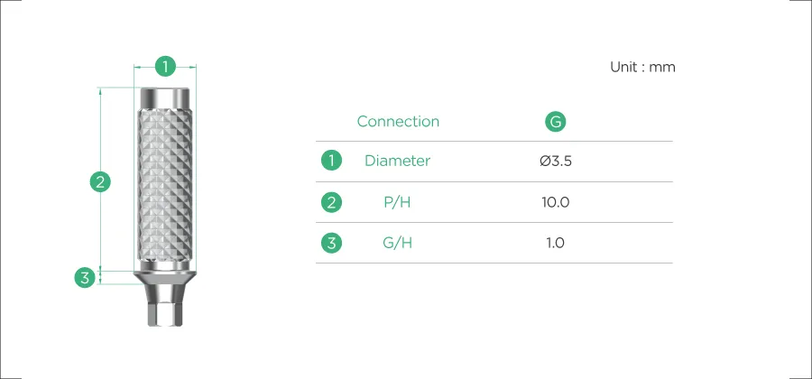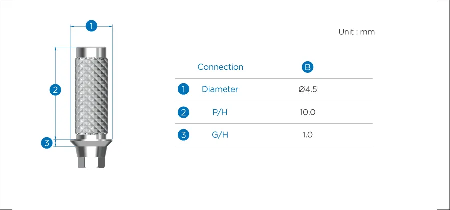 It has height of 10 mm and gingival height of 1 mm